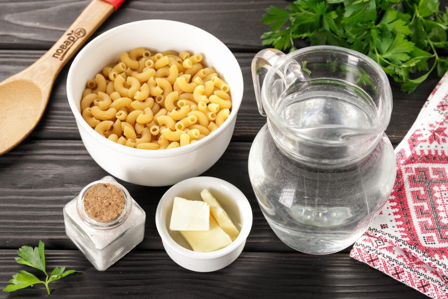 Подготовьте все ингредиенты по списку. Макароны можно взять любой формы (например, перья, спиральки, ракушки, бантики), главное, чтобы они были хорошего качества, из твёрдых сортов пшеницы.