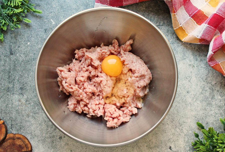 В миску выложите мясной фарш и вбейте яйцо.