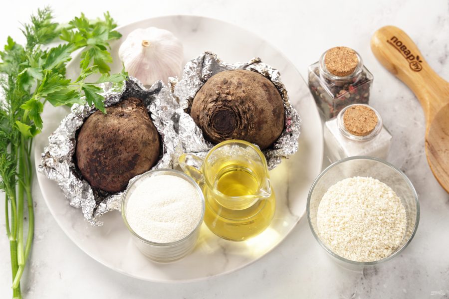 Подготовьте все ингредиенты по списку. Если у вас есть возможность, свеклу запеките накануне. Для этого разогреваем духовку до 220 градусов, тщательно моем свеклу, заворачиваем каждую в фольгу отражающей стороной внутрь и кладём запекаться на 50-60 минут (в зависимости от размера свеклы). Можно и отварить, после чего дайте свекле остыть.