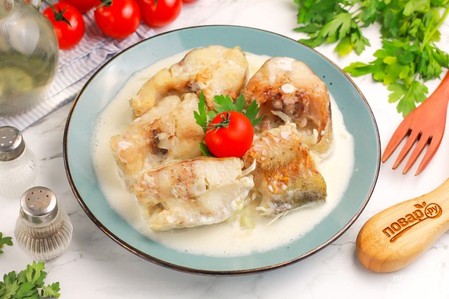 Выложите кусочки минтая на тарелку и полейте соусом. Подайте к столу с хлебом, лавашом, чиабаттой. Приятного вам аппетита!
