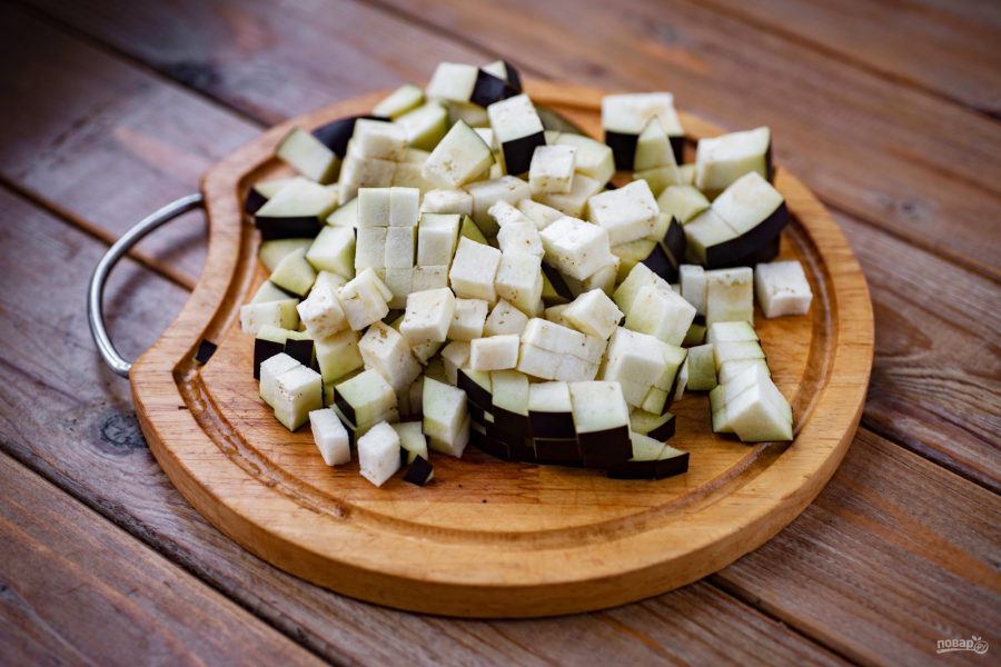 Баклажан нарежьте небольшими кубиками.