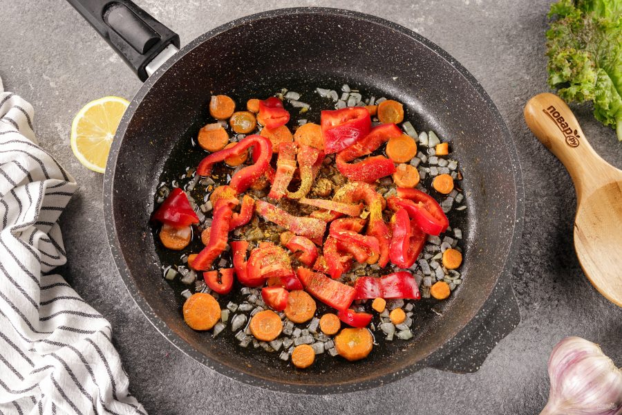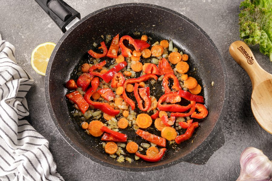 Обжарьте овощи до мягкости.