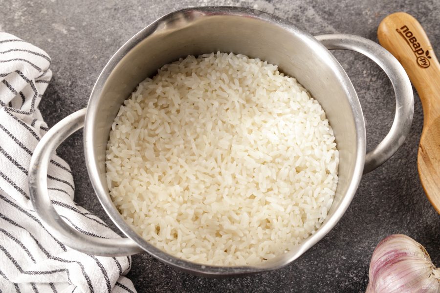 Затем добавьте варёный рис.